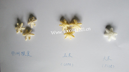 2017年10月19日,我公司迎来了德国客户的现场验机。本次使用SMCP-70J挤出膨化机实验,分别以大米、非洲粮食、玉米为对象;从实验结果看,星形米花的膨化度非常高,产量较大;非洲粮食膨化的成型效果最佳,成品率高;玉米的膨化效果相比大米而言,颜色更加鲜艳,呈淡黄色,比较有食欲感;