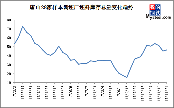 Until November 26, blast furnace steel city of tangshan heating season execution to leak into the second week.Resources continue to tighten and the demand in the upstream supply end purchasing intention on the low side, under the present situation of steel billet mainstream prices by 3780 yuan/ton on Friday to edge up to 3830 yuan/ton, high prices in the market of supply and demand two weak slightly higher.